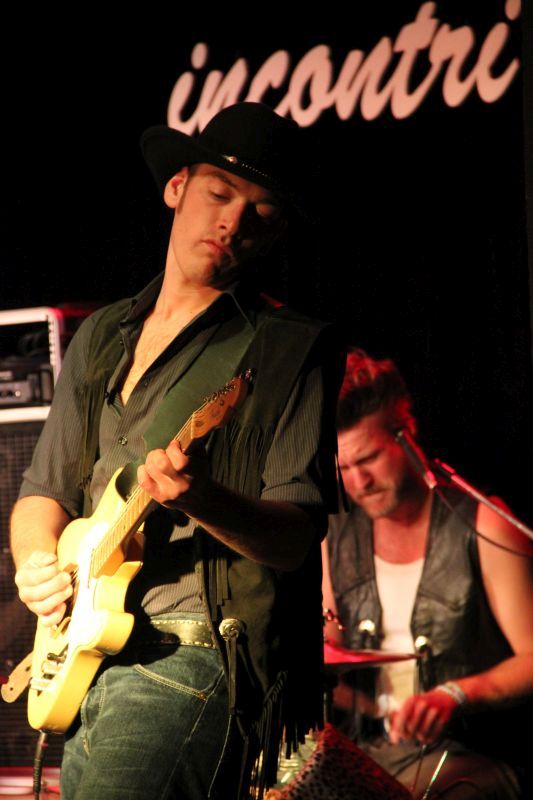 Haarspray und Pomade haben ihre Aufgaben erfüllt, die Tollen stehen sattelfest. Jetzt auf die Bühne und los gehts; keine große Vorstellung, sondern direkt ins Eingemachte. Country'n'Roll haben sie ihren Musikstil irgendwann einmal genannt. Los geht das Incontri-Konzert zunächst einmal mit dem zweiten Teil des Stilnamens: Rock'n'Roll ist angesagt. "Route 66", der Chuck Berry Klassiker, ist dabei ebenso im Repertoire wie Songs von Elvis, Jerry Lee Lewis oder Buddy Holly. Aber auch Eigenkompositionen werden gespielt, die natürlich allesamt auf den inzwischen drei veröffentlichten CD's enthalten sind.