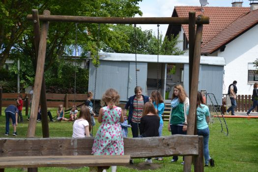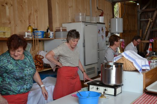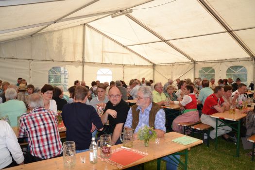 Pfarrer Alois Gurtner hatte scheinbar diesen richtigen Draht gehabt. Trotzdem hatte die Kirchengemeinde sicherheitshalber ein großes Festzelt aufgebaut, man kann ja nie wissen….Bei herrlichem Sonnenschein begann das Pfarrfest mit einem gut besuchten Gottesdienst, um danach gleich nebenan ins Festzelt zu wechseln. Die Damen der Kirchengemeinde und ihre männlichen Helfer hatten an der Salat- und Kuchenbar sowie am Grill für das leibliche Wohl gesorgt, und während die Eltern im Zelt saßen und feierten, tobten die Kinder nebenan auf dem Spielplatz. Zur Kaffeezeit am Nachmittag spielte dann die Blaskapelle der Ministrantengruppe („de Haubndaucha“) unter Leitung ihres Dirigenten Lukas Stolz auf.