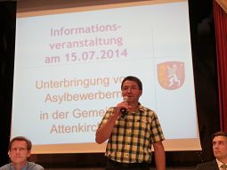 Die Gemeinde Attenkirchen lud zu einer Informationsveranstaltung zur bevorstehenden Aufnahme von Asylbewerbern in der Gemeinde ein. Seit bekannt wurde, dass das Landratsamt Freising bereits zum 1. August 34 Personen in Attenkirchen unterbringen will und weitere folgen sollen, herrscht große Unruhe. Aus diesem Grund lud Bürgermeister Martin Bormann in den Bürgersaal.