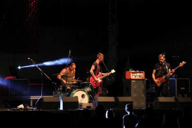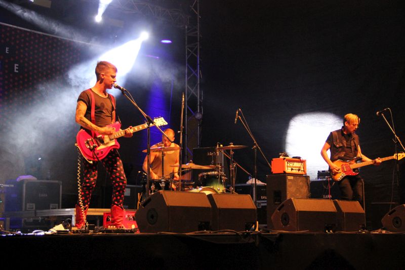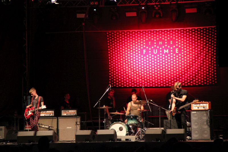 Nach dem Pfälzer-Punk kamen die Nordlichter: zunächst waren dies Sänger Filip Hartsner, Pedro Insomni Neon am Bass und "The Lars" an den Drums, gemeinsam treten sie auf als The Fume. Sie kommen aus Schweden und es gibt sie auch schon seit 2008. Ihre erste Hitsingle " Living for the Weekend" aus dem Album "Rock 'n' Roll Ain't a Seasonal Thing" (2013) könnte fast das Motto des Festivals sein, die Songs laden durch die Bank ein zum Mitgröhlen und Headbangen. "Glam Rock'n'Roll Punk" hat ein Rezensent den Musikstil genannt, vielleicht trifft es das. Einflüsse gibt es jedenfalls aus den unterschiedlichsten Genres, lediglich laut und schnell muss es sein.