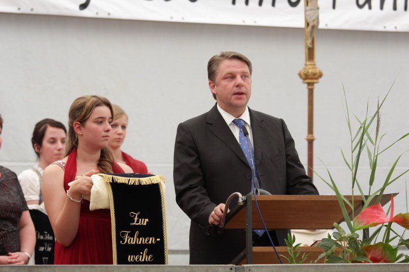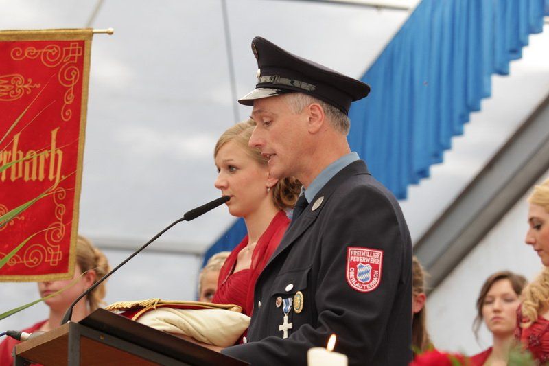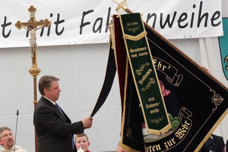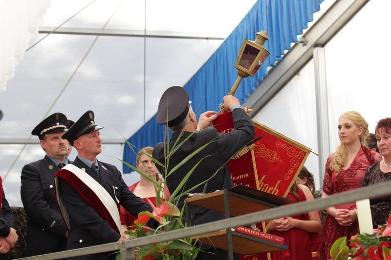 „Wir feiern heute ein großes Feuerwehrfest mit Fahnenweihe“, begrüßte Gemeindepfarrer Thomas Schießl die Festgemeinde und wandte seinen Blick aber dann weniger auf die Feierlichkeiten, sondern auf die ehrenamtliche Arbeit, die Tag für Tag von den Floriansjüngern verrichtet wird. „Ohne diese freiwilligen Helfer würde unsere Gesellschaft nicht funktionieren.“ Auch Schirmherr Bürgermeister Jens Machold, Landrat Martin Wolf und Kreisbrandrat Armin Wiesbeck betonten in ihren kurzen Ansprachen das Ehrenamt.