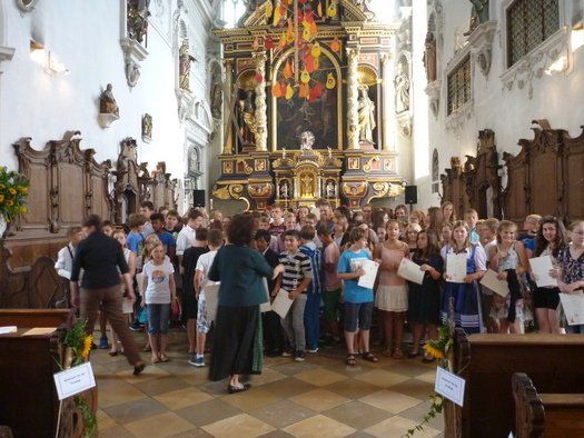 Leider erreichte die Gemeinde am Freitagnachmittag die traurige Nachricht vom Tod ihres Stadtpfarrers. „Er wäre gerne bei euch gewesen“ sagte Jutta Rödler zum Abschlussgottesdienst am Sonntagvormittag, an dem die Firmurkunden verteilt wurden. „Eine schwere Last könne auch zum Wachsen verleiten“ an der Geschichte von Ben Sadok und der jungen Krüppelpalme zeigte sie mit einem schweren Stein in der Hand, wie man diesen Weg gehen kann.