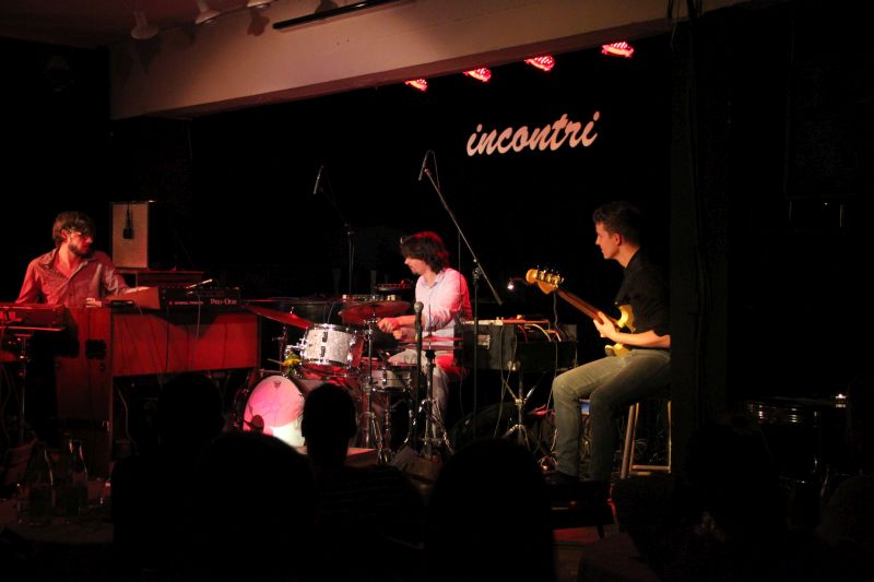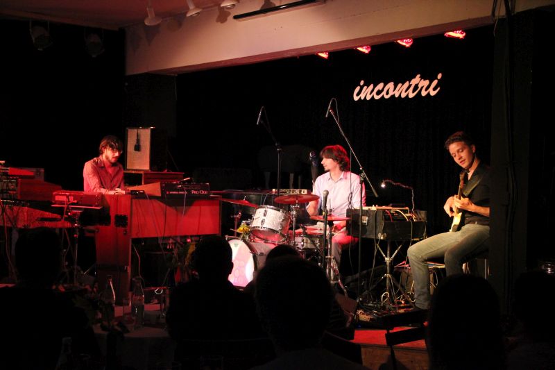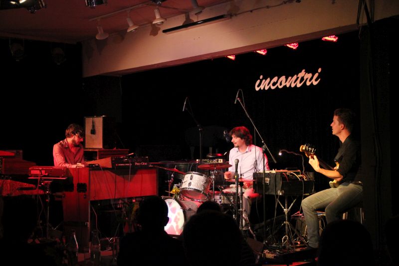 Organ Explosion, das sind 3 ausgebildete Musiker aus München und Schongau, die am Freitagabend ein regelrechtes Feuerwerk in der Kulturwerkhalle abbrannten. "Jazz" stand auf der Kategorie des Incontri-Programms, nicht selten Indikator für eher geringen Besucherzuspruch. Die Konstellation von Organ Explosion jedoch hat aber scheinbar viele Besucher neugierig werden lassen und scheint doch einige mobilisiert zu haben. Orgel, Schlagzeug und Bass, Rhythmus pur, Kompositionen unterschiedlicher Stilrichtungen von Jazz über Blues und Funk bis hin zu Hip-Hop - Konzertbesucher, was willst Du mehr?