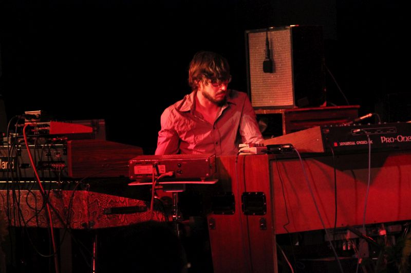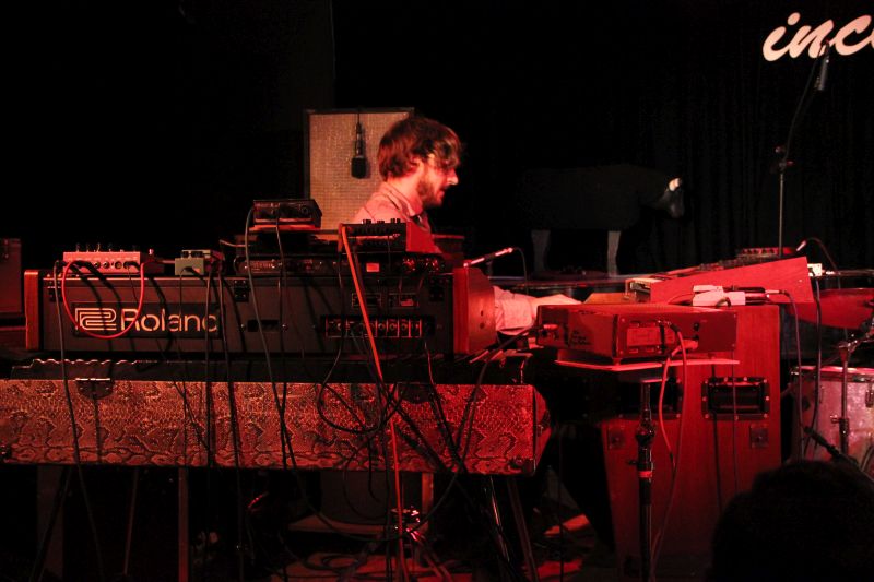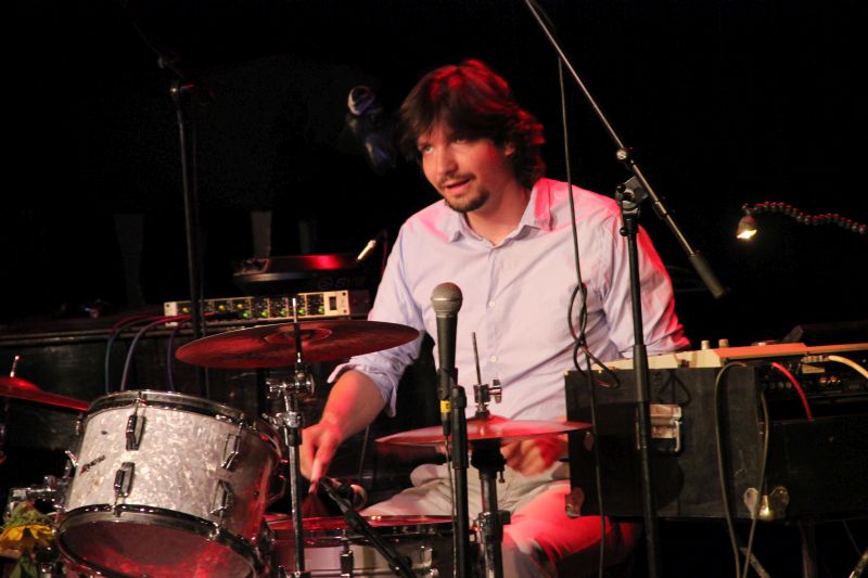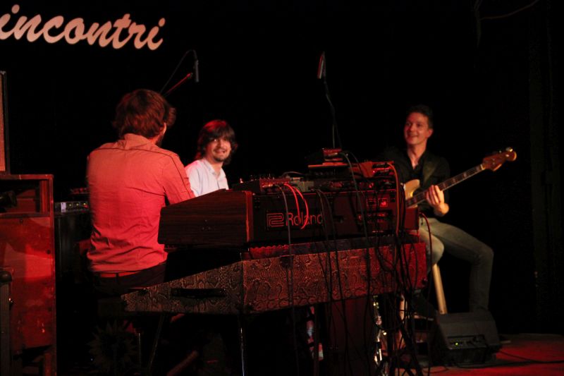"Heute wurden gefühlt 10 Kilometer Kabel verlegt." amüsierte sich Incontri-Vorstand Herbert Folger über den nicht alltäglichen Aufbau auf der Bühne. Manfred Mildenberger mit seinem Schlagzeug im Zentrum, aus Zuschauersicht rechts neben ihm Bassist Ludwig Klöckner. Den gesamten linken Teil der Bühne nimmt das Cockpit von Hansi Enzensberger ein. Hammond-Orgel, Moog-Synthesizer und Leslie Lautsprecher brauchen einfach ihren Platz, da ist ja auch noch einiges mehr an Mechanik drin als in den modernen, von Elektronik gesteuerten Instrumenten.