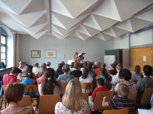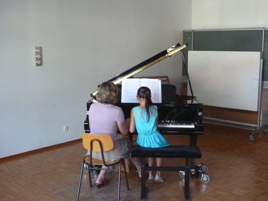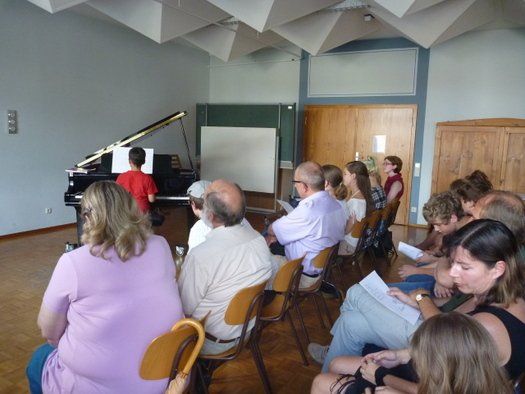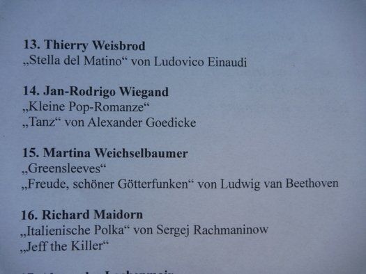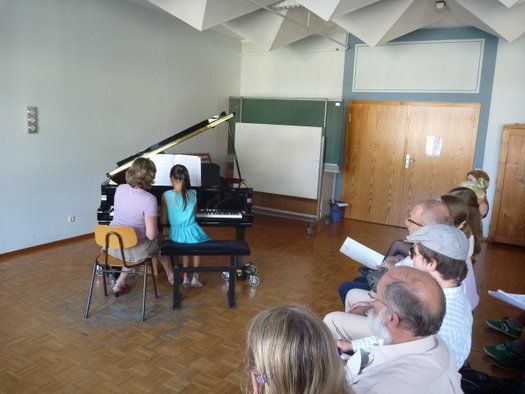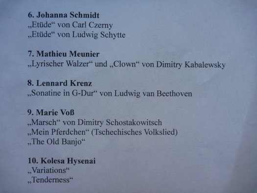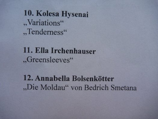 Der Zuhörerraum war natürlich mit Eltern und Großeltern gefüllt, die die Fortschritte ihres Nachwuchses für die Nachwelt auch digital aufzeichneten. Die Schüler hat es nicht sichtbar gestört, ein gutes Zeichen, wenn man in jungen Jahren schon Publikumsfest ist. Die Verneigung nach dem Vortrag muss noch etwas geübt werden, ansonsten waren alle miteinander vorzeigbar.