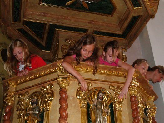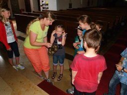 Einmal all diese Sachen machen, bei denen die Mamas immer sagen, „das macht man in der Kirche nicht“. 9 Mädchen und Buben trafen sich im Rahmen des Ferienprogrammes in der Kirche St. Vitus und erkundeten zusammen mit der Erzieherin Doris Bauer alles rund um den Auer Kirchturm.