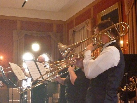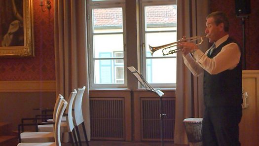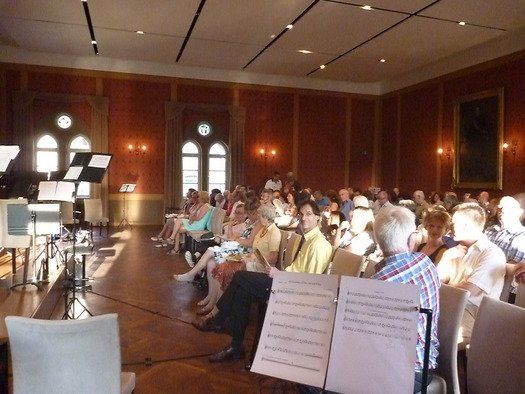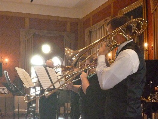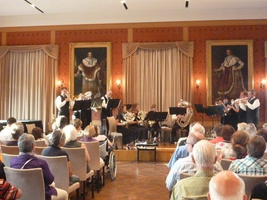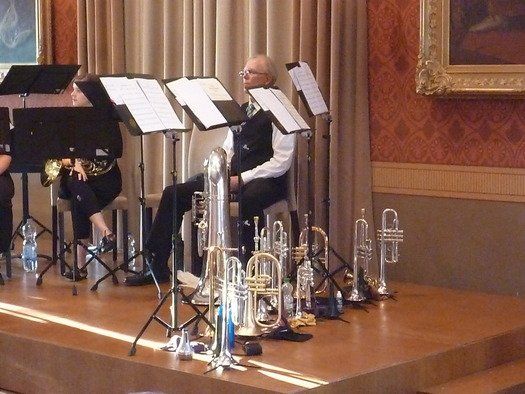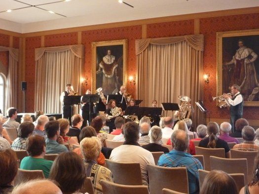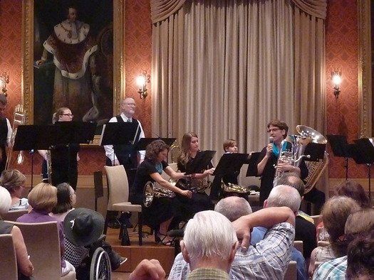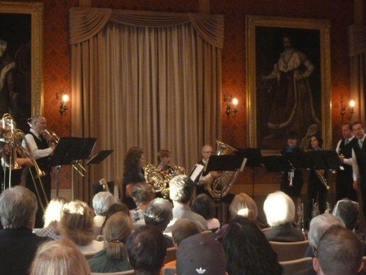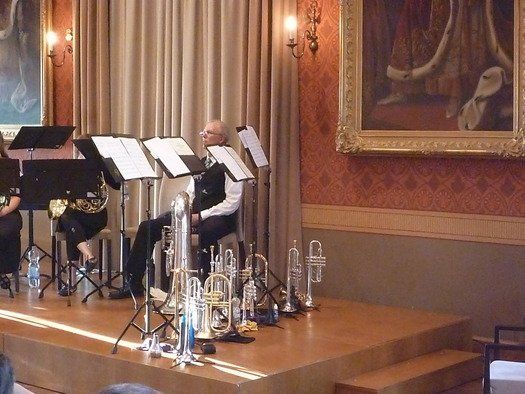 Der Ruf der Gemeinde und der Bläser hallte schon am Nachmittag mit einem Standkonzert durch die Innenstadt und so war der historische Saal bei der hoch professionellen Vorstellung, auch gut gefüllt. Einmal im Jahr kommt die bunt gemischte Bläsertruppe von Eurobrass, in wechselnder Besetzung, über den großen Teich in den alten Kontinent. Die Mitglieder sind ausnahmslos Profis ihres Faches und finden sich auf eigene Kosten zu diesen Konzertreisen zusammen.