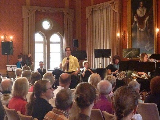 Im Laufe des Abends stellten sich die einzelnen Mitglieder persönlich, in deutscher Sprache, mit viel Humor dem Publikum vor. Eine fast familiäre Atmosphäre kann man dem Abend bescheinigen und Liebhaber dieser speziellen Art der Musik, kamen voll auf ihre Kosten. Ungewöhnliche und sehr spannende Arrangements für Bläser, ließen den ehrwürdigen alten Saal in Schwingung geraten
