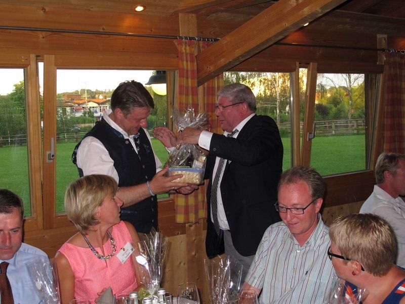Die Belgier kamen mit rund 70 Gästen. Rekordbeteiligung! Julia Holzvoigt und ihr Vorstandsteam boten ihnen einen bayerischen Abend mit der Tanzlmusi Schwarzhuber, Spanferkel und kaltem Buffet, bayerischen Craftbieren, italienischen Edelweinen, Whisky und Gastgeschenken. Alles lief wie am Schnürchen. Die Gewerbeverbandsvorsitzende begrüßte alle Gäste des Abends, lobte die gute Zusammenarbeit mit Bürgermeister und Marktverwaltung und würdigte die Poperinger Besucher: Aus Partnern wurden Freunde.