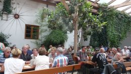 Im Anschluss fand im Biergarten ein Weißwurstfrühschoppen statt, was angesichts des tadellosen Wetters eine besondere Wonne war. Zum Tanz zur Mittagsstund´ lud ein die Alt-Zucheringer Blasmusik, woraufhin einige Biergartenbesucher sodann das Tanzbein schwangen und sich der Tanzboden mehr und mehr füllte.