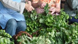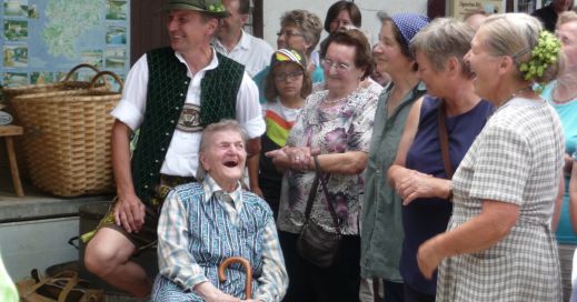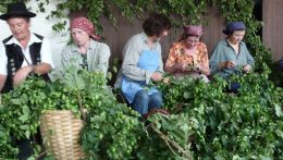Auf ihren „Schamerln“ sitzend zupften die fleißigen Pflückerinnen unter den neugierigen Blicken der Zuschauer das grüne Gold von den Reben. Wer noch nie echten Hopfen gesehen hatte, durfte natürlich selber Hand anlegen und somit die Faszination „Hopfen“ hautnah erleben.