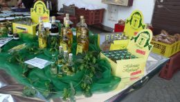 Gegen 10 Uhr etwas öffnete dann auch der Bauernmarkt, der wie jedes Jahr neben zahlreichen Hopfenprodukten auch einen Probeausschank von Bieren mit neuen Hopfensorten, Hopfenlimonade, Hopfensecco, oder dem Holledauer Hopfagschbusi von Hildegard Heindl aus Au i. d. Hallertau umfasste.