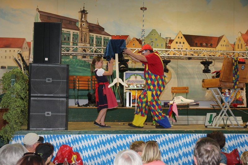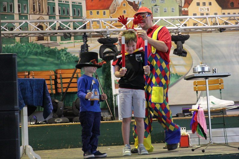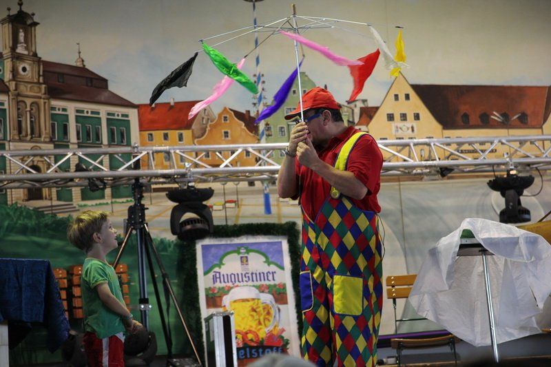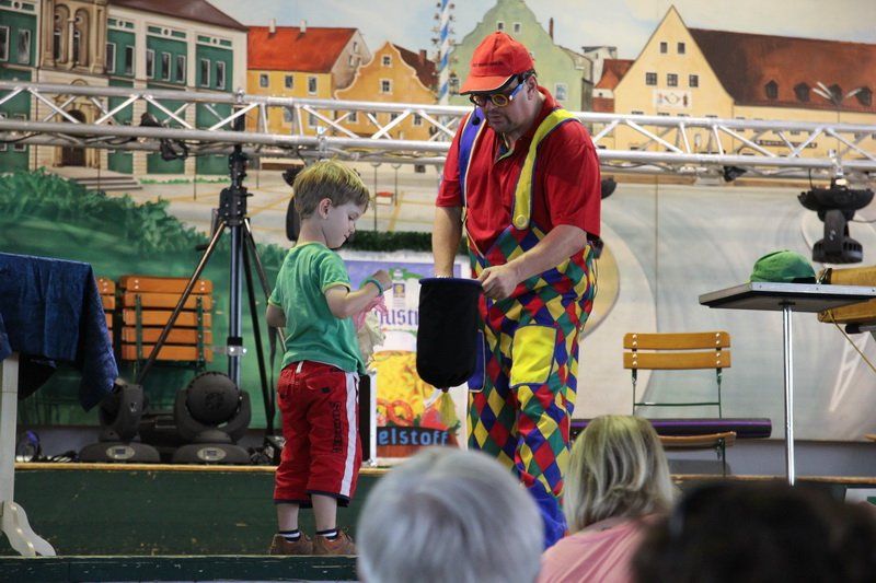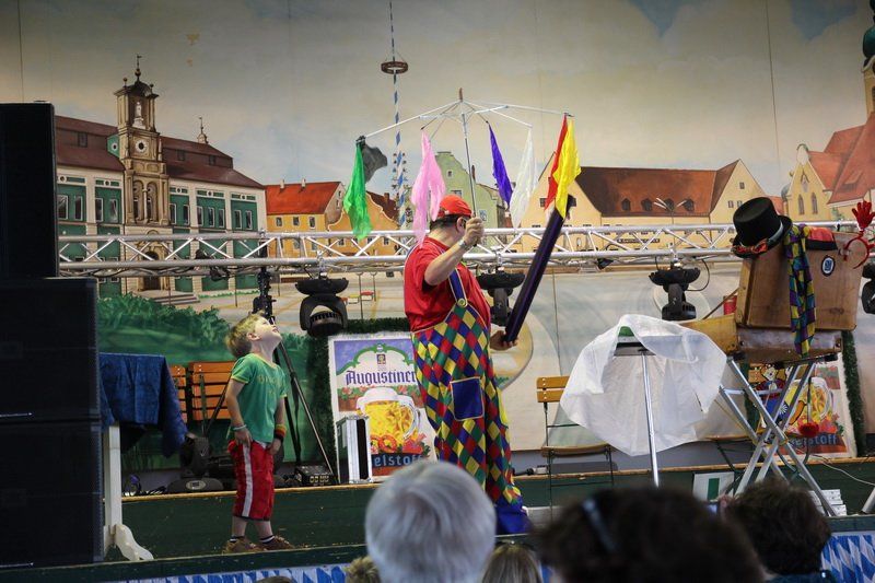 Und während draußen das Geschäft brummte, sorgte drinnen Zauberer Kunterbunt für fröhliche Stimmung. „Ich sehe schon heute habe ich wieder ein besonders kritisches Publikum“, doch schon nach wenigen Minuten war das Eis gebrochen und die Kleinen staunten nicht schlecht über die Tricks, die er mitgebracht hatte. Dass dabei nicht immer alles so funktionierte, wie sich der Zauberer das dachte, das quittierte das kleine Publikum mit einem Lachen. „In Wolnzach auf der Bühne zu stehen ist immer etwas Besonderes“ so Helmut Zweck. Auch die Kinder waren am Ende begeistert. Ein rundum gelungener Nachmittag.