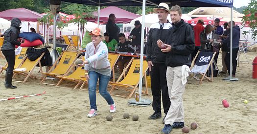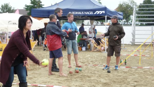 "Heute kann es regnen, stürmen oder schneien"... so hielten es auch die hartgesottenen und tapferen Teilnehmer am Boccia-Turnier am Mittwoch. Sie kämpften sich am Mainburger Stadtstrand tapfer durch den verregneten Nachmittag, bis letztlich die Sieger feststanden. Ebenso wenig wie die Sportler ließen sich die Kinder vom Regen davon abhalten, in der bunten Erlebniswelt von Spielwaren Hoppala ihrem Spiel- und Basteldrang freien Lauf zu lassen.