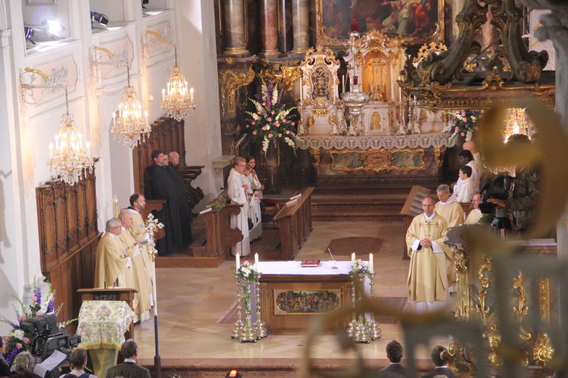 Zu einem Festgottesdienst luden die Benediktinermönche am Mariä Himmelfahrtstag in die Scheyrer Basilika ein. Der Bayerische Rundfunk hatte sich angesagt und übertrug live in seinem 3. Fernsehprogramm. Anlass neben dem kirchlichen Festtag war die Feierlichkeit anlässlich des 100jährigen Bestehens des Basilikachors Scheyern.