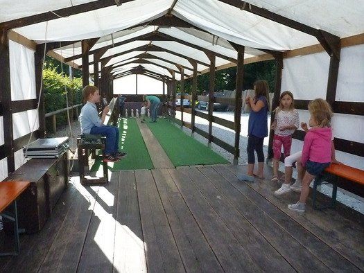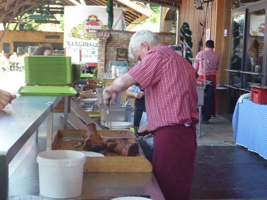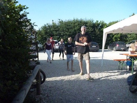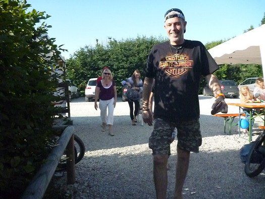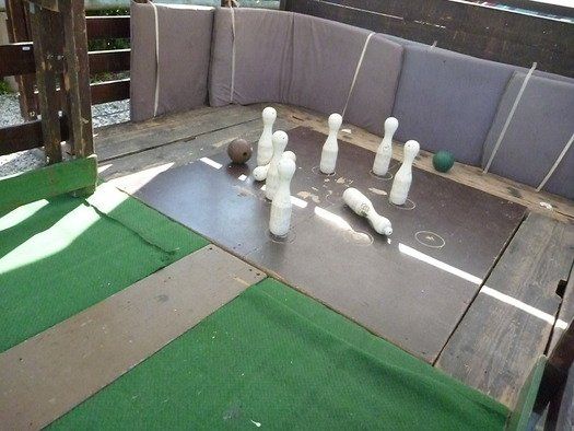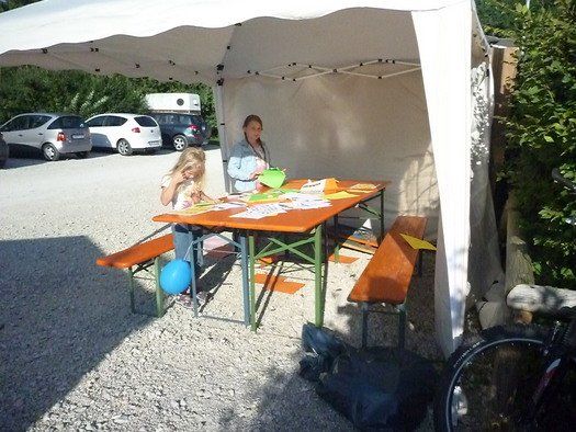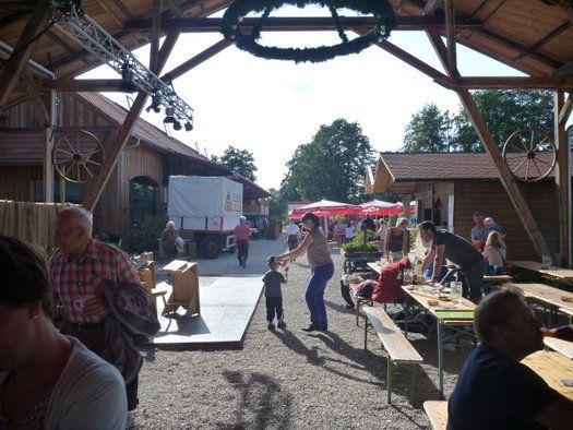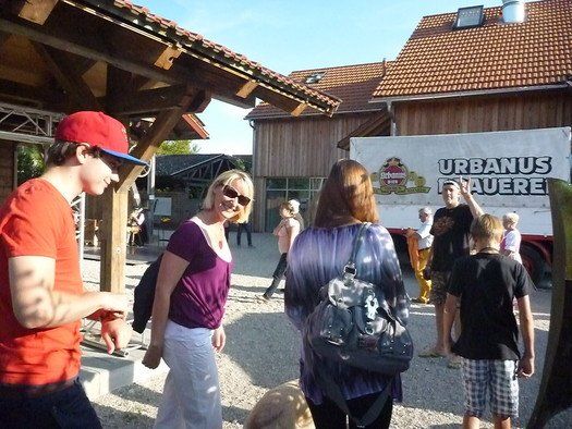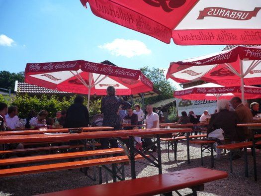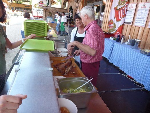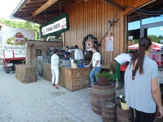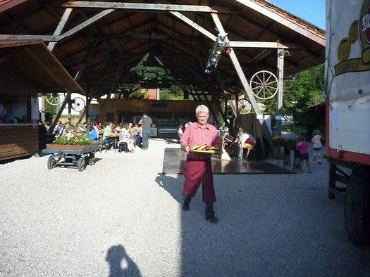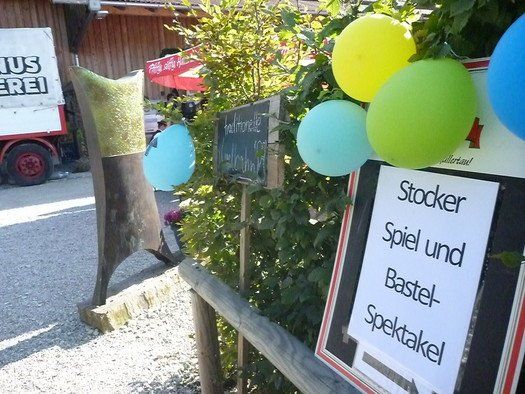 Der Nachmittag und Abend war dann doch noch nach dem Herz des Wirtes und seiner Angestellten. Reichhaltiger, durstiger und hungriger Besuch fand sich fast scharenweise ein und belagerte Biertische und Schenken. Kinder und Erwachsene machten große Augen bei der spektakulären Artistik-Show von Pierre und Frank dem Duo Ingrávido an einem ungewöhnlichen Sportgerät. Die Holzkegelbahn kam endlich zu Ehren und im hauseigenen Kräutergarten probierten sich die Kinder durch die Küchenkräuter von Frau Stocker.
