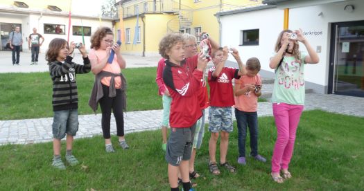 Nach dieser theoretischen Einführung begab man sich in den Schulhof der Elsendorfer Grundschule und versuchte, das frisch erlernte Wissen sogleich umzusetzen. Herr Biebl forderte die Kinder auf bestimmte Motive so gut wie möglich abzulichten, was teilweise eine echte Herausforderung bei dem Lichteinfall der untergehenden Abendsonne war. Doch auch hier stand er mit Tipps zur Seite und zeigte, was man beachten muss, um am Ende gelungene Aufnahmen zu bekommen, die man von denen eines Profis kaum unterscheiden kann.