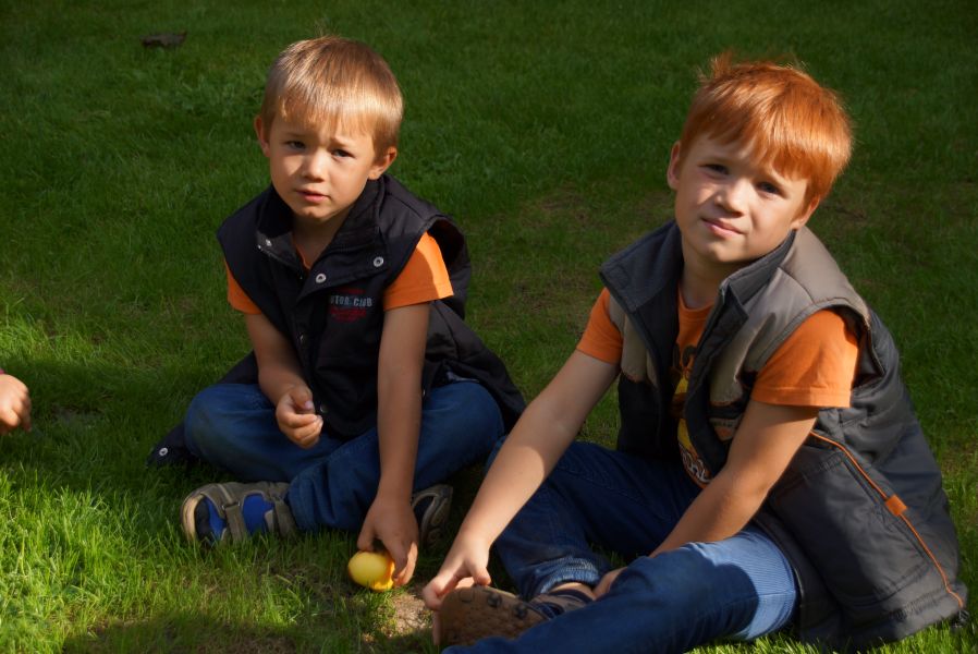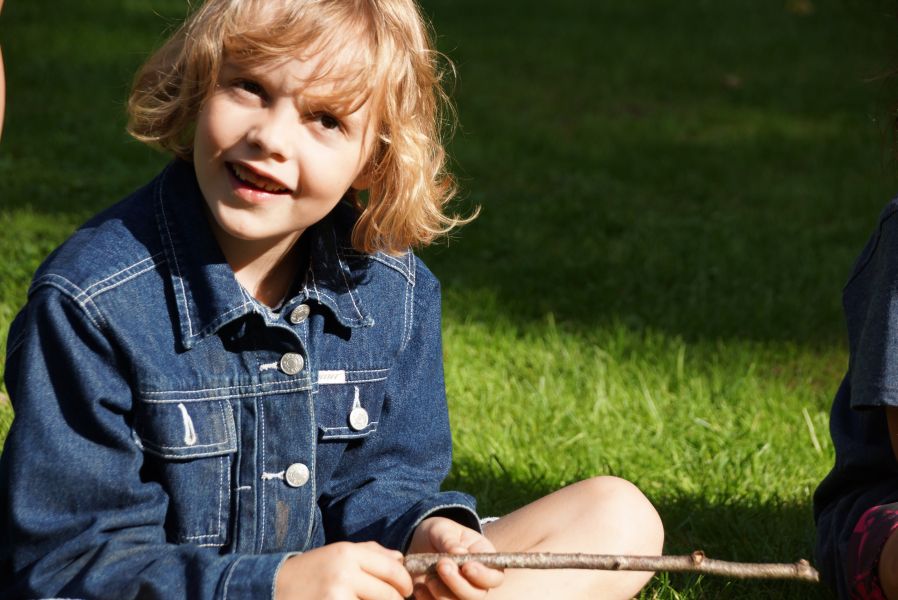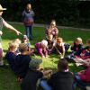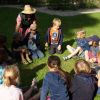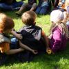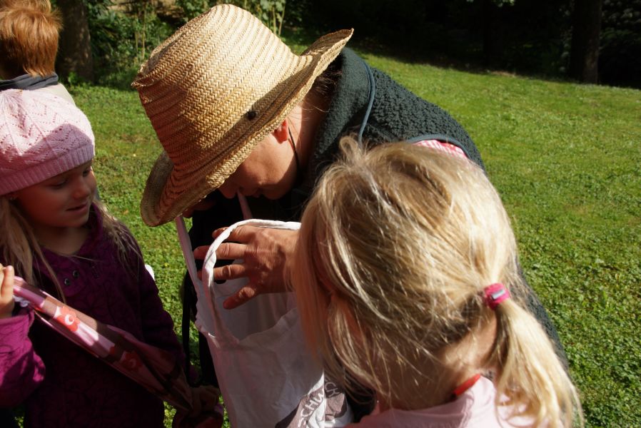Mit Säckchen oder Korb bewaffnet zog der Trupp los und sammelte alles ein, was es so an Schätzen der Natur zu finden gab. Da kam einiges zusammen. Von besonderen Steinen, Tannenzapfen, Eicheln, Haselnüssen, Hagebutten, bis hin zu Blättern aller Art, Holzstücke, und sogar Tomaten und Äpfel fanden die kleinen Entdecker.