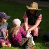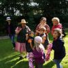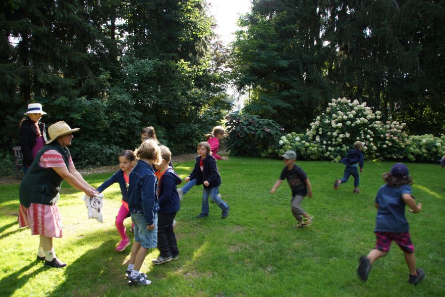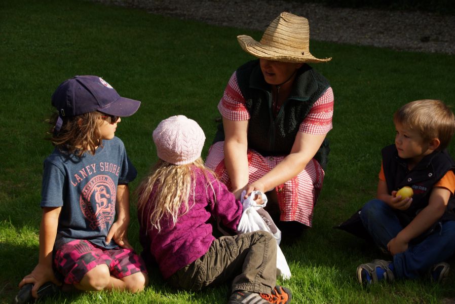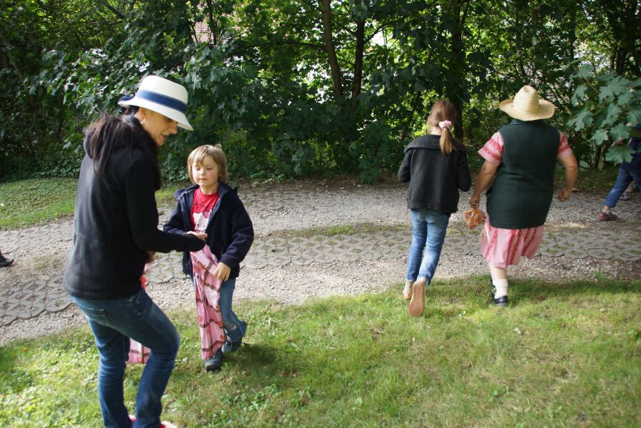 Voller Begeisterung ließen sich die 4 – 9jährigen die verschiedenen Tast- und Geschicklichkeitsspiele, wie den „Tomatenlauf“ und das altbayerische Wurfspiel „Brackeln“ zeigen.