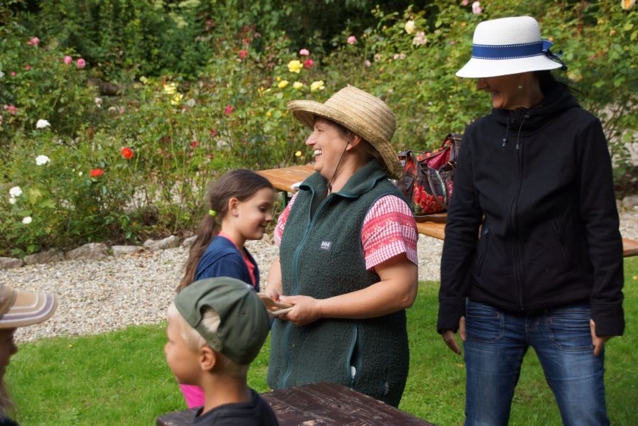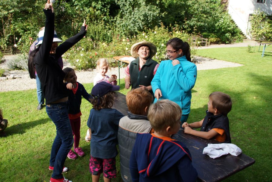Zusammen mit Hannelore Zierer und Maria Schlögl gingen sie auf Schatzsuche, die sich auf dem weitläufigen Gelände in und um den Schlossgarten erstreckte.