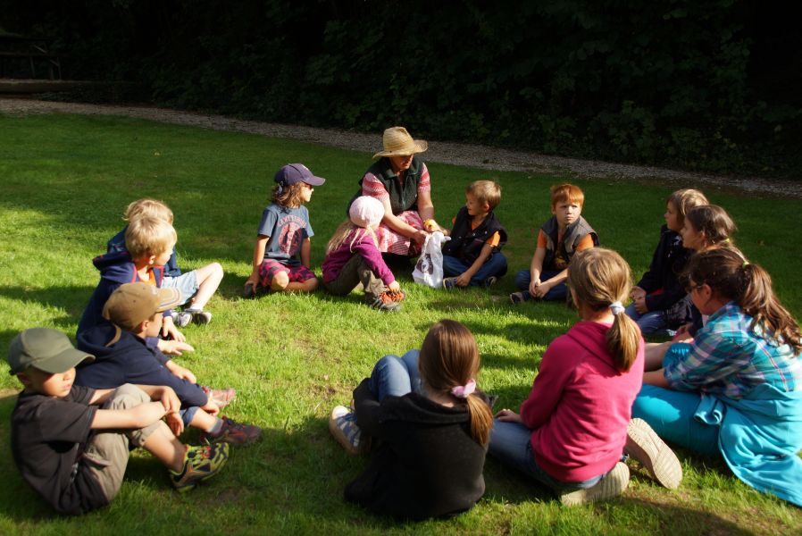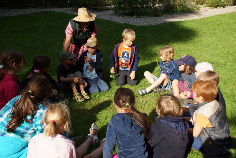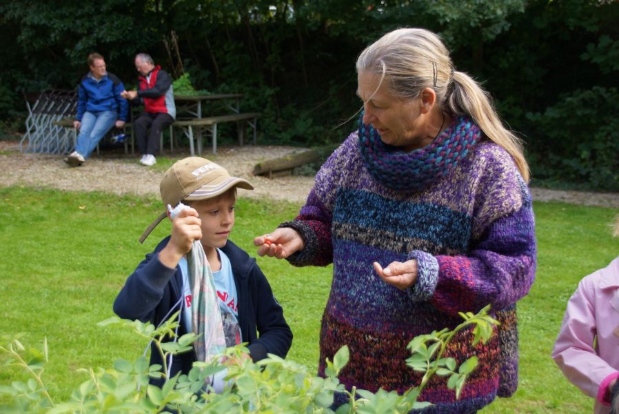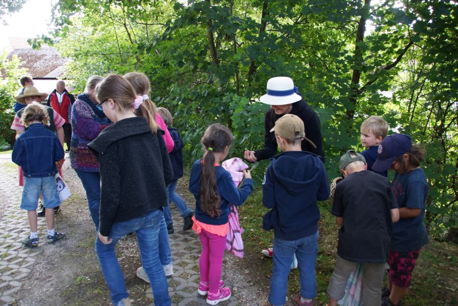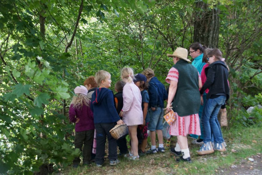 Maria Schlögl aus Schweinbach, die ihre Naturbegeisterung bei verschiedensten Anlässen an den „Mann“ bringt, zeigte den Mädchen und Buben auch, was sie mit ihren gesammelten Schätzen alles anfangen können.
