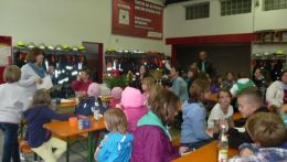 Im Rahmen der Abschlussveranstaltung, war man froh, im Feuerwehrhaus vor dem nasskalten Wetter geschützt zu sein. Man verbrachte ein paar gesellige Stunden bei Kaffee und Kuchen. Natürlich ließ sich Frau Ramser auch hier etwas einfallen, nämlich ein Quiz mit anschließender großer Verlosung. Dabei ging jedes Kind mit einem Preis nach Hause.