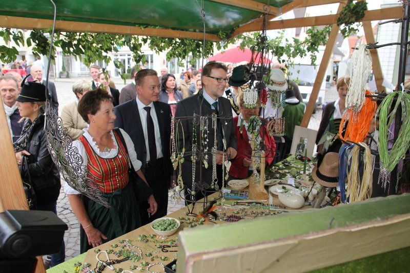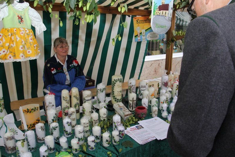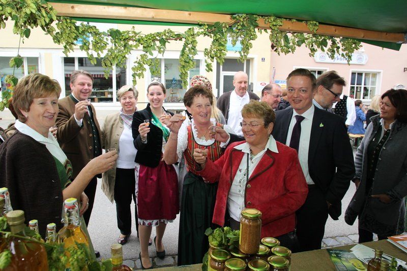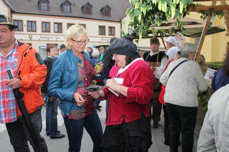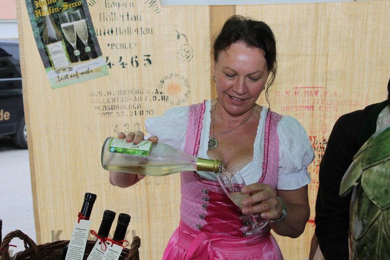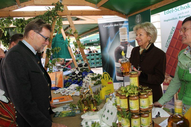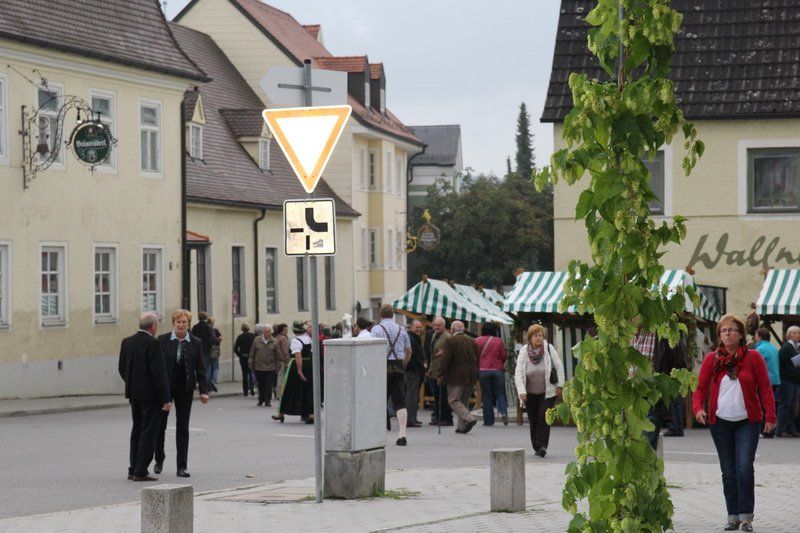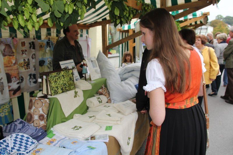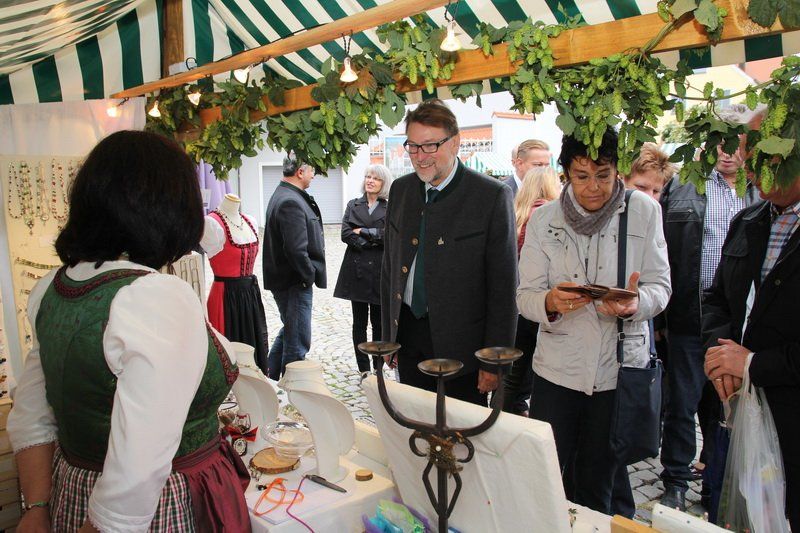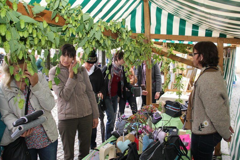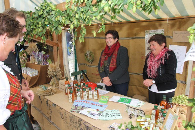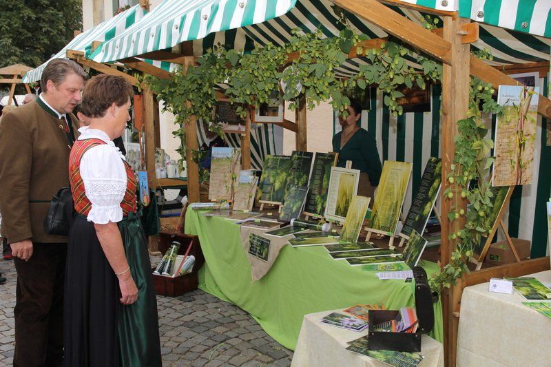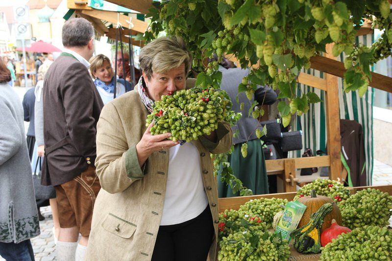 „Der Hopfen ist das Zeichen der Hallertau“, so Andreas Herzog vom Tourismusverband Hallertau. Und am Ende freute er sich nicht nur über die 36 Stände, die den Hopfen in den verschiedensten Formen anpriesen, sondern auch über die zahlreichen Besucher. Über 700 Besucher beteiligten sich am Gewinnspiel und schätzten das Gewicht des Hopfensackes. „So viele waren es bis lang noch nie“, erklärt Herzog weiter. Aber nicht nur am Stand des Tourismusverbandes drängten sich die Menschen, auch entlang des Rathaus- und Marienplatzes gab es vieles zu entdecken. Hopfenschmuck, Hopfenkränze oder das „grüne Gold“, süß verpackt in Schokolade, lockten viele auf die Straßen und auch auf die Höfe.
