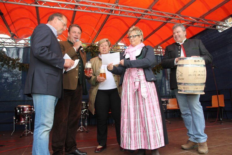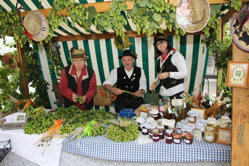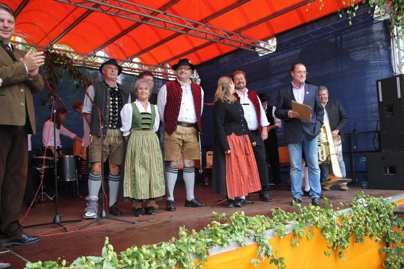 So konnte man beim Hopfakranzlfest die verschiedensten Facetten des „grünen Goldes“ erleben. „Es ist eindrucksvoll, wie sehr die Region vom Hopfen geprägt ist“, erklärte Wolnzachs Bürgermeister Jens Machold nach dem Rundgang über die Regionalmesse. Zwar hätte sich der Rathauschef ein etwas besseres Wetter gewünscht, denn am Ende musste doch der eine oder andere seinen Regenschirm aufspannen. Aber auch wenn der Nieselregen das Fest etwas früher zu Ende gehen ließ, so zog Andreas Herzog ein positives Fazit: „Wieder sind nicht nur Leute aus unserer Region gekommen“, so Alexander Herzog, „sondern sogar aus der Landeshauptstadt München.“ In Wolnzach konnten sie die Hallertau mit allen Sinnen erleben und auch vor der Bühne in die Tradition eintauchen. Blasmusik und Volkstanzeinlagen und traditioneller Zweigesang boten den Rahmen für eine gelungene Messe.