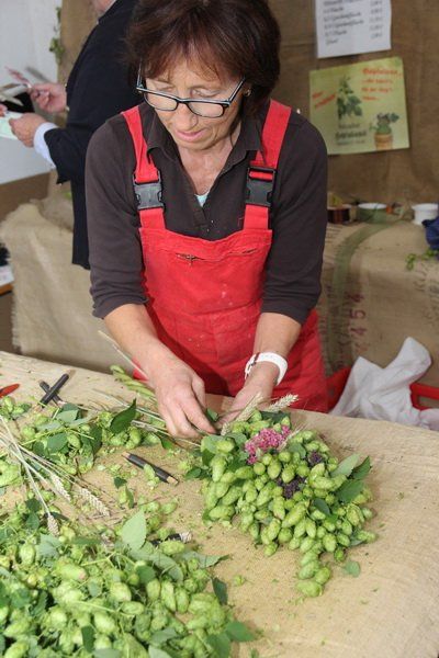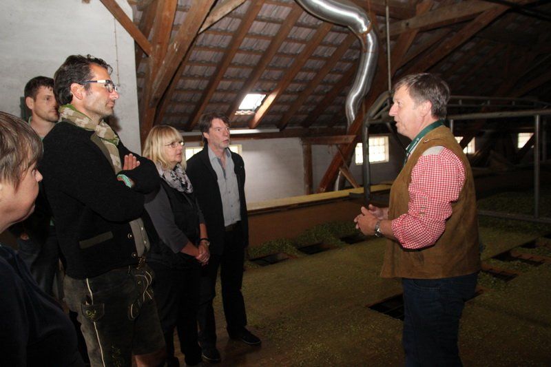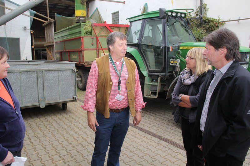 Ja, man konnte den Hopfen im wahrsten Sinne des Wortes erleben und bei der Ernte den Landwirten über die Schulter schauen. Noch läuft die Ernte in vollen Zügen, auch auf dem Hof der Familie Randelzhofer. „Heute gibt es noch eine Handvoll Hopfenbauer in Wolnzach. 1970 waren es noch über 100“, erklärt Josef Schrot, der die Besucher über den Hof führte. Vieles hat sich verändert, doch eines ist gleich geblieben für die Hallertau ist der Hopfen ein entscheidender Wirtschaftsfaktor. Auf knapp 15.000 Hektar wird das grüne Gold angebaut. Was aber alles gemacht werden muss bis der Hopfen das Bier veredelt oder was ein „Schmuser“ ist, das konnte man beim Betriebsrundgang erfahren. Man durfte aber nicht nur die Ernte beobachten, sondern auch Annemarie Randelzhofer über die Schulter schauen, wie traditioneller Hopfenschmuck hergestellt wird. Auch Anneliese Stadler aus Großgundertshausen fertigte Kränze und Sträuße aus Hopfen an. „Im Haus entfalten sie dann ihr Aroma und halten sich ein Jahr lang“, erklärt sie.