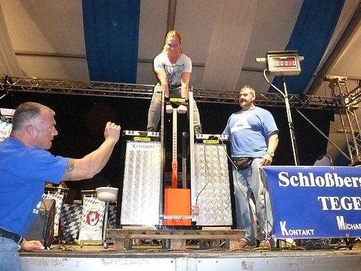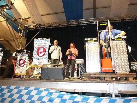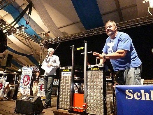 Zu einen regelrechten „event“ wie es neudeutsch heißt, entwickelte sich das Steinheben auf dem Pfaffenhofener Volksfest 2014. Das an einem Montag das große Festzelt so gut wie voll ist, hat durchaus etwas mit den starken Männern, und vor allen Dingen mit den Frauen zu tun.