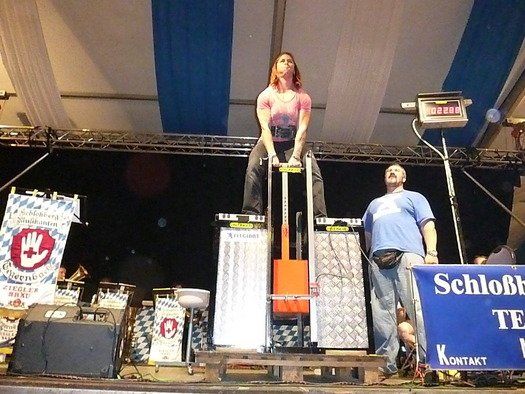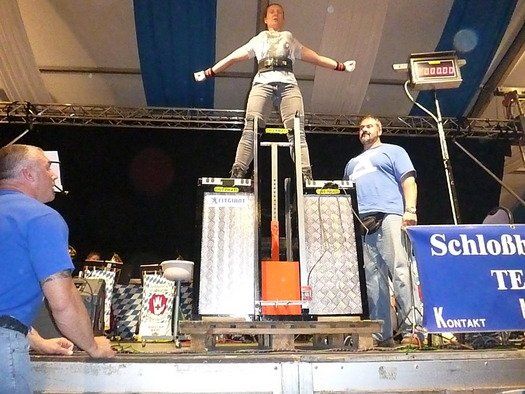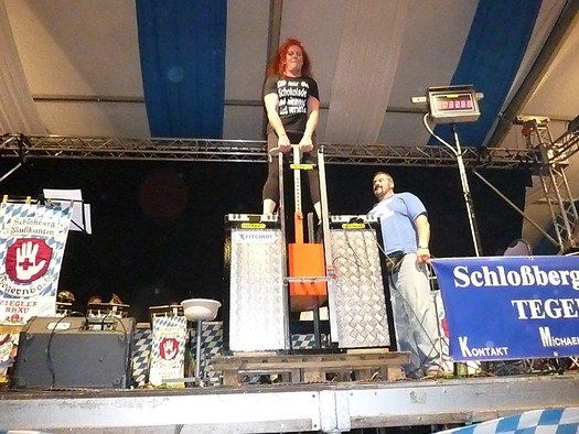„Strong Women“ sind nicht nur starke Frauen im körperlichen Sinn, sondern auch Persönlichkeiten die sich mental der Herausforderung Gewicht stellen. Nein nicht Körpergewicht, es ging darum, ganze 150 kg vom Boden weg zu „lupfen“. Die Geißler Nicole ist in dieser Disziplin uneingeschränkte Meisterin ihres Faches, die sich aber auf Nachfrage von Moderator Roland Balzer, am Flughafen auch gerne mal den Koffer tragen lässt. Stolze 83,53 cm zog sie das Sportgerät vom Podium weg in die Höhe, die Herget Martina hob 50,77 cm und die Dier Barbara 29,50 cm, bei 150 kg.