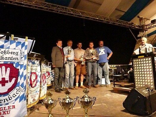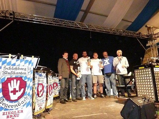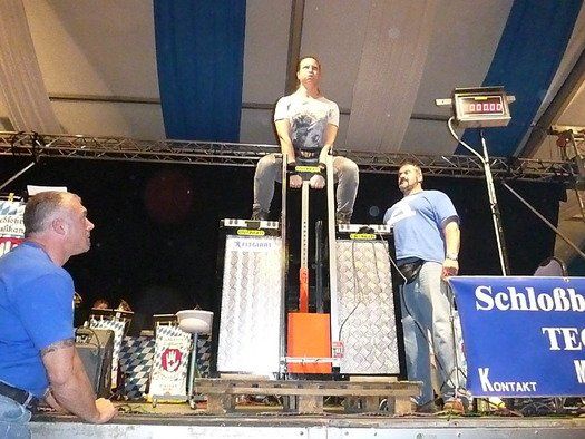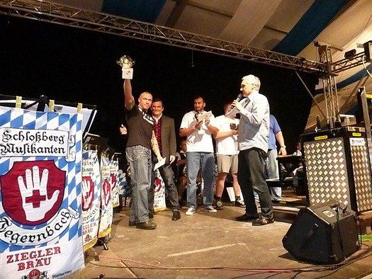 Bei den Männern gab es zwei Gewichtsklassen und entsprechende Sieger an diesem langen Volksfestabend. Bei unter 100Kg Körpergewicht sprechen wir von „Normalgewicht“, darüber ist selbstredend, Schwergewicht. Der Ritzer Franz hat mittlerweile die Königsklasse erreicht und zeigte sich seiner Favoritenrolle gerecht. In einem an Spannung nicht zu überbietendem Stechen mit Vehbi Davul, der mit 33,54 Zentimetern los legte, folgte Franz Ritzer mit 74,50, Davul legte nach, 75,80 cm. Ohne Bandagen, aber mit einer gehörigen Portion Frechheit, zeigte der Lokalmatador, wo bei ihm der Hammer hängt, 78,77 cm bei einem Gewicht von sage und schreibe 279 kg.