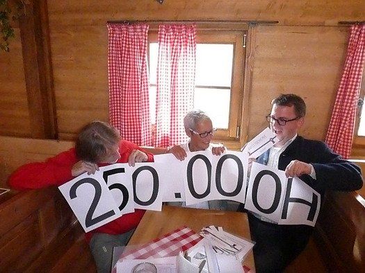 Die Pfaffenhofener Regionalgeld-Initiative Hallertauer hat eine viertel Million Hallertauer geschaffen, nein nicht Menschen unserer Heimat, gute Scheine, Geldscheine. Zu diesem denkwürdigen Anlass hatten Manfred "Mensch" Mayer und Anna Elisabeth Mayr vom Regionalgeld-Verein und Fabian Stahl, der Präsident(e) des Vereins "Lebendige Innenstadt", in die Sitz Hütte auf dem Volksfest Pfaffenhofen zu einem Kaltgetränk geladen.