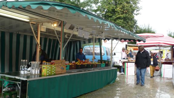 Schaut´s euch an, was die Region alles zu beten hat! Mit einem breiten Angebot an regionalen Schmankerln lockte der traditionelle Ratzenhofener Bauernmarkt die zahlreichen Besucher in Scharen an. Trotz des unaufhörlichen Regenfalls, mal nur leichter Niesel, mal in Strömen, war einiges los auf dem Schlossgelände. Auch wenn man wegen des Regens nicht alles so genau und in aller Ruhe unter die Lupe zu nehmen konnte, sorgten die Aussteller mit ihren Überdachungen vor und boten so ein wenig Schutz vor den hereinbrechenden Schauern.