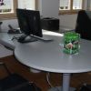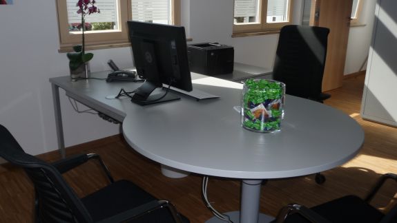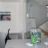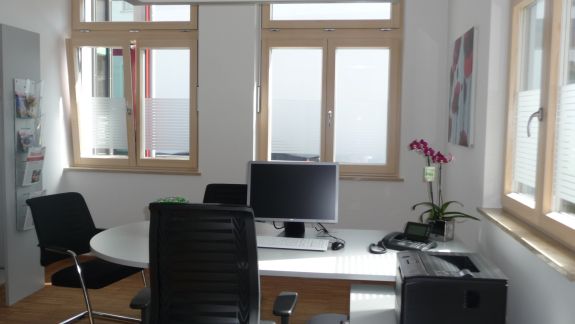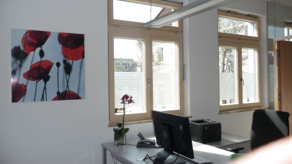 Die zuletzt vorhandene Eicheoptik des Empfang-und Servicebereichs, die eher bedrückende wirkte, wurde nun ersetzt durch die einladende Geste der Glasarchitektur des Windfangs und der Trennwände sowie eine lockere Möblierung aller Innenbereiche. Optimiert wurde auch das Außengebäude. An der Südseite geplant und demnächst realisiert werden noch einige Sitzplätze.
