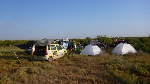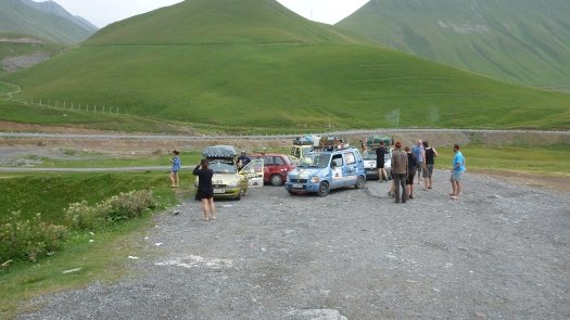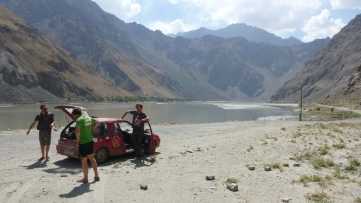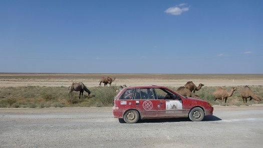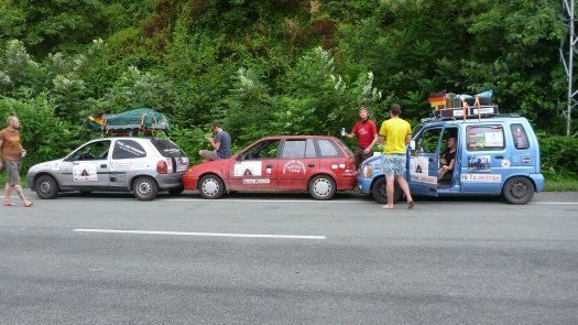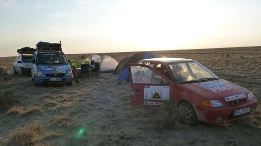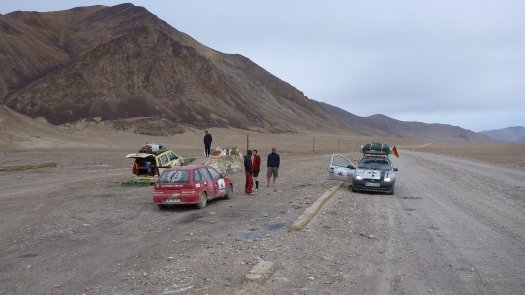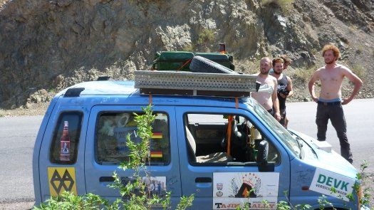 An Kasachstan erinnert er sich auch deshalb gut, weil " wir nachts und ziemlich auf der Hälfte der Strecke mitten in der Staubwüste einen Achsbruch gehabt haben." Der zog 14 Stunden unfreiwilligen Aufenthalt nach sich. "Die Straßen sind übersät mit Schlaglöchern, dann wieder fehlen ganze Teile von der Straße - für unsere Verhältnisse unvorstellbar." Johannes, der Umwelttechnik-Ingenieur, improvisiert mit Spanngurten und hält damit die Achse an der Karosse fest. "Das hat gehalten bis zum Ende der Rally."