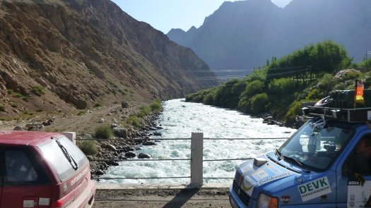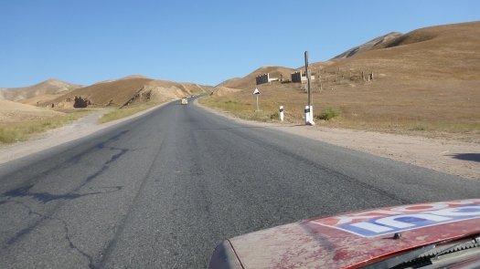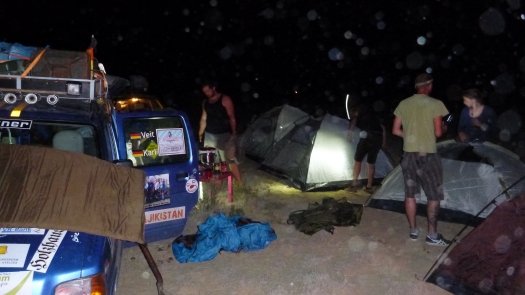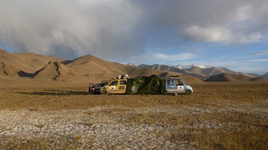 Nicht nur nach großen und kleinen Reparaturen kam man ganz schön ins Schwitzen, besonders natürlich in den Wüstengebieten wo die Luft nach Staub schmeckt und die Weite grenzenlos erscheint. "Nachts war es mit etwa 25 Grad nicht so heiß, doch tagsüber so um die 40 Grad." Am gut 1500 Kilometer langen Pamir-Highway allerdings, der Verbindung von Kirgisien und Tadschikistan, war die Kälte gnadenlos zu spüren. Drei Grad in der Nacht habe es gehabt.