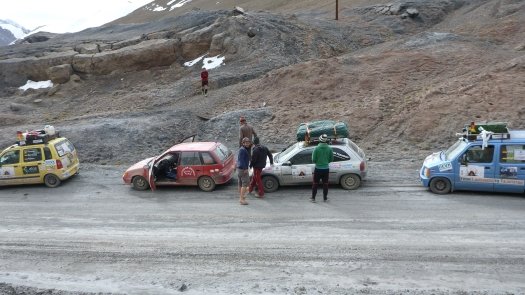 "Die Höhe hat aber mehr zu schaffen gemacht: Kopfschmerz und ein Gefühl von Kraftlosigkeit." Immerhin ist er Pamir mit Gipfeln in 7.000 Meter Höhe auch das zweithöchste Gebirge der Welt. Dazu kam das während der holprigen Fahrt hinsichtlich seiner Vielfalt äußerst überschaubare Essen: Nudeln und Reis in der Hauptsache. Käse und Wurst gab es nur in den Dörfern und wurde sofort verzehrt wegen der Verderblichkeit. "Verdauungsprobleme sind vor allem durch schnelles , hastiges Essen entstanden." Hinzu kamen der wenige Schlaf "und die Strapazen allgemein. "Es mussten zudem pro Mann zehn Liter Trinkwasser in Kanistern reichen. Mehr Flüssigkeit gab's nur für das Automobil, dem 25 Liter Reservebenzin zugestanden wurden.