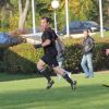 Das Spiel begann kampfbetont, wobei sich die Szenen weitestgehend im Mittelfeld abspielten. Der STS hatte in den ersten 20 Minuten eindeutig mehr Spielanteile, Manuel André in der Sturmspitze des FSV sorgte bei Kontern aber immer wieder für Gefahr vor Uli Unterburgers Tor. Nach einem punktgenauen Pass aus dem Mittelkreis heraus auf Nico Seepe spielte dieser die gesamte Pfaffenhofener Abwehr aus und netzte unhaltbar für Torhüter Rene Gräfe ein (23.). Nach dem Rückstand wurden die Gäste aus der Kreisstadt etwas offensiver und bekamen mehr Spielanteile, ohne jedoch zu zwingenden Chancen zu kommen. Kurz vor dem Seitenwechsel dann die Hiobsbotschaft: im Lauf zum Ball griff sich Manuel André an den Oberschenkel und sackte zusammen (Bild rechts); mit Verdacht auf Muskelfaserriss war das Match für ihn mit dem Pausenpfiff beendet.