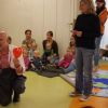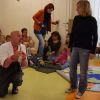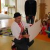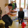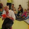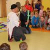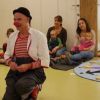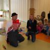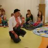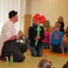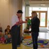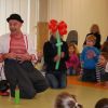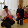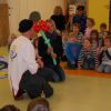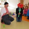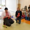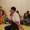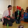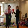 Zur Scheckübergabe hatte die Chefin der Clowns, Karin Platzer, nämlich einen perfekten Vertreter ihrer Zunft in den Burzbaam entsandt. Mit LUPINO kam ein diplomierter Vollprofi mit einem eigenen Clownauto, die edlen Spender besuchen. Mit nicht nur einem Purzelbaum und entsprechend komplizierter Vorbereitung desselben, zauberte er sich in die Manege der KITA. Fast, oder noch besser wie im richtigen Zirkus, durften die Kinder bei seinen Kunststücken mitmachen.