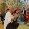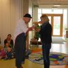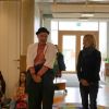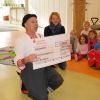 Laut ging es zu, Seifenbasen und Luftballonherzen zerplatzten, die Leiterin Andrea Mischke durfte assistieren und nicht nur sie hatte Freudentränen in den Augen. LUPINO erzählte aber auch von seinen Auftritten bei kranken Kindern oder im Altersheim. Fast eine volle Stunde dauerte die Vorstellung, so ein Clown ist aber auch umständlich bis er mal fertig ist. Bis der endlich mal den symbolischen Scheck richtig herum in das Publikum gezeigt hat, dauerte schon eine Ewigkeit, der könnte nicht bei der Stadt arbeiten.