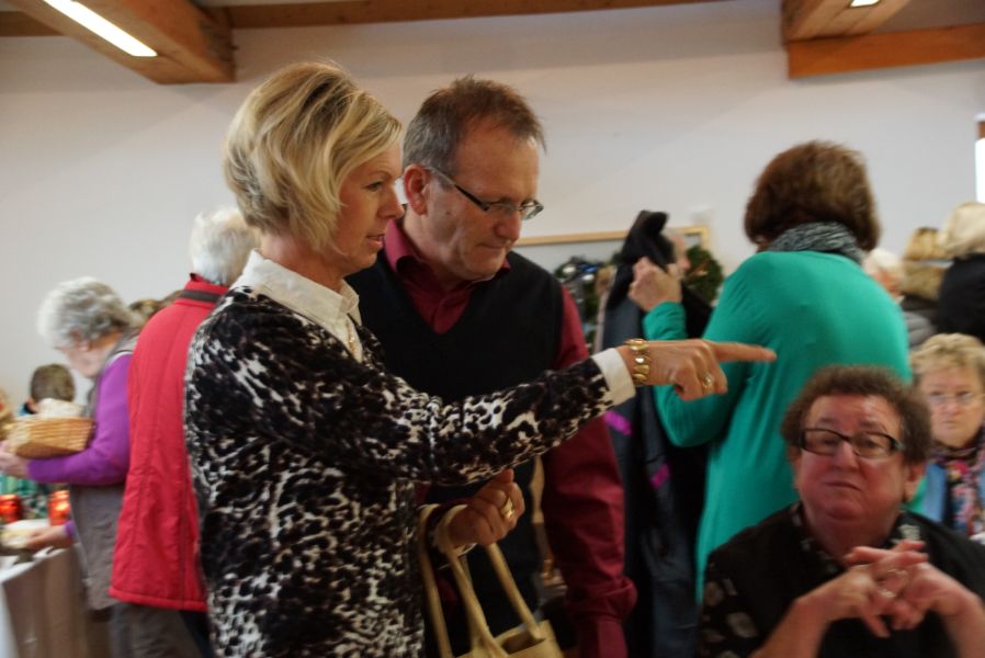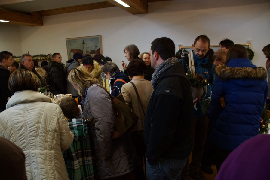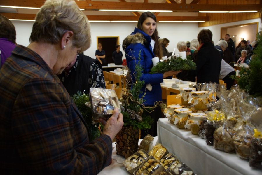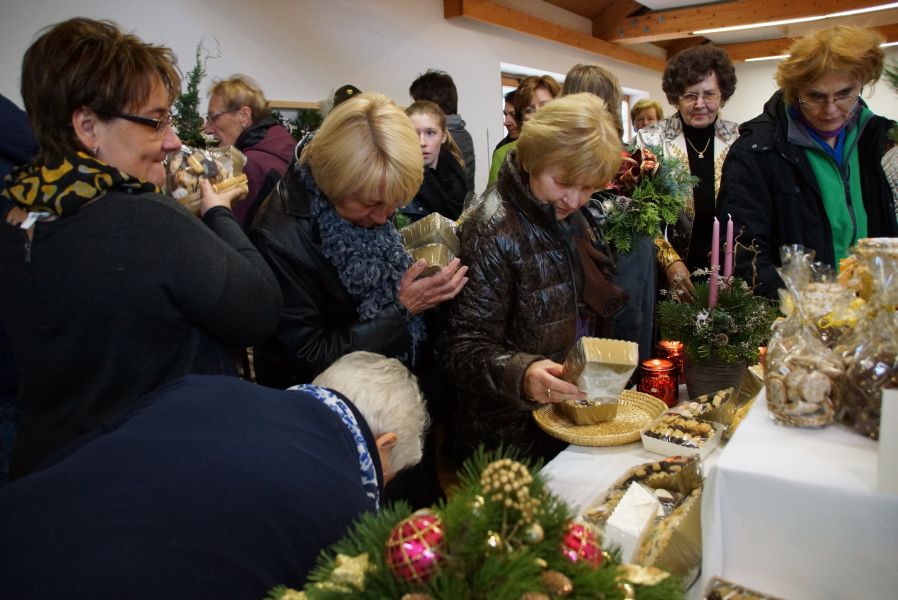 Auf die Minute pünktlich wurde der „Verkaufsraum“ von der 1. Vorsitzenden des Frauenbundes, Katharina Stanglmeier, geöffnet. Eilends machten sich die Damen und einige Herren auf die Suche nach ihren Lieblingsprodukten, zu denen vor allem die selbstgebackenen Plätzchen und das selbsteingemachte Blaukraut gehörte.