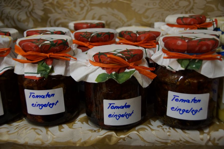 Aber auch die vielen verschiedenen Marmeladen und Gelees fanden reißenden Absatz. Außerdem gab es Adventsgestecke und –kränze, allerlei Grill- und Brotzeitsoßen, eingelegten Käse, süß-saure Kürbis-, Tomaten- und Zucchinispezialitäten sowie Hausmacher Senf, Holundersirup, Punsch-Essenz, Eier- und Schoko-Wiksky-Likör und vieles, vieles mehr.