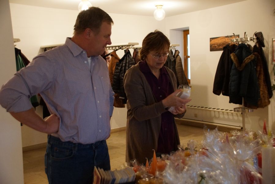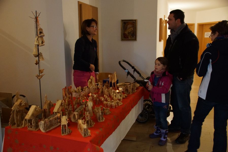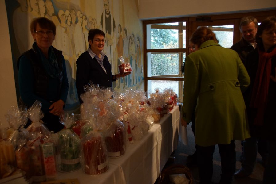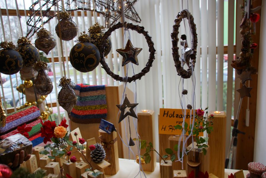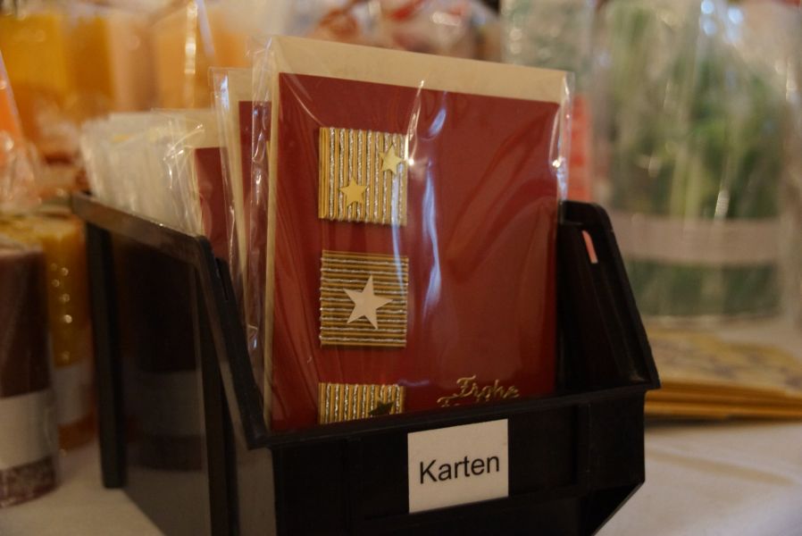 Schon im Eingangsbereich gab es einiges zu sehen. Die Behindertenwerkstätten Wambach stellten auf eigene Regie selbstgebastelte Kerzen und Weihnachtskarten aus. Kaum zu glauben, mit welch einfachen Mitteln solch schöne Ergebnisse möglich sind.