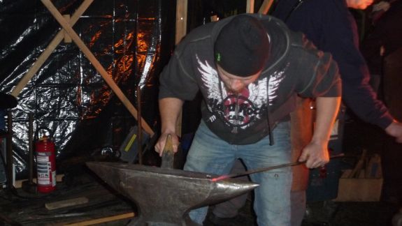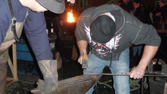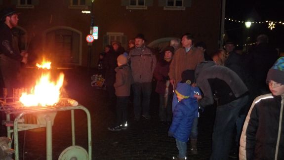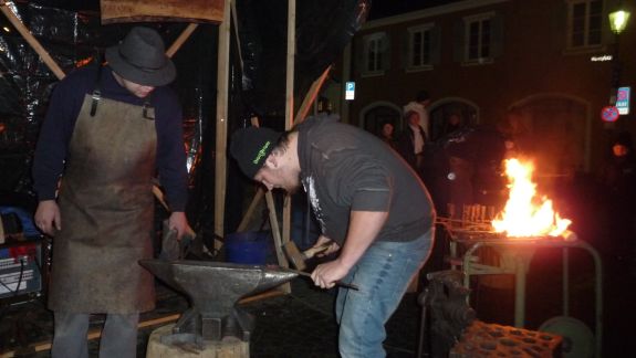 Wer es mehr handwerklich liebte, der war bei den Jungs der Bachleitenschmiede und Bergschmiede „Joas“ genau richtig. Der Umgang mit dem Feuer an offenem Lager mit glühendem Eisen, Hammer und Amboss faszinierte jeden vorbeischlendernden Besucher, besonders aber die Kleinen. Kräftig und gezielt wurde zugeschlagen, bis ihre Eisenteile in der richtigen Form waren und letztlich Sternschnuppen oder Laternen ergaben. Auf die Kinder wartete in der "Wichtelstube" ein Kinderschminken, in der am Sonntag noch einige andere Attraktionen für sie geboten sind. Auftritte der Moabuaga Volksmusik und einer Ensemblegruppe der Städtischen Musikschule sowie der Jugend-und Stadtkapelle ließen eine andächtige Weihnachtsstimmung aufkommen.