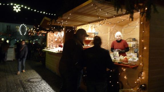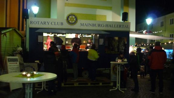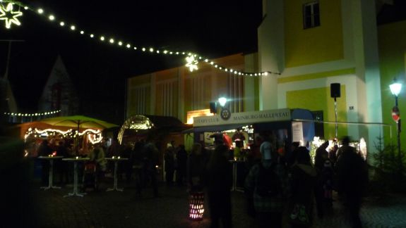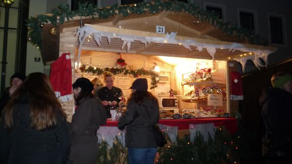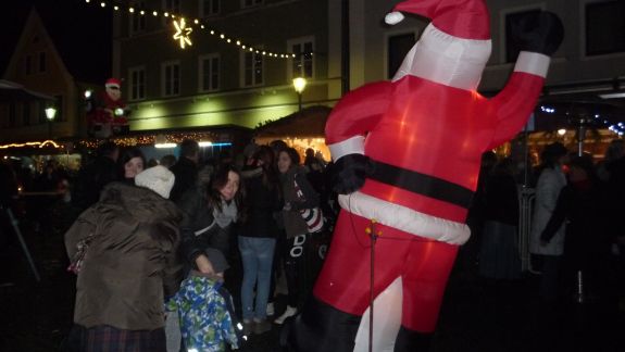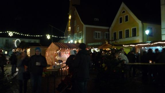 Einen besonderen Reiz bot der Christkindlmarkt in der abendlichen Dunkelheit eingebettet in ein Lichtermeer von Kerzen und Beleuchtung, Glühweinduft und Weihnachtsliedern. Von Würstl über Crêpes bis Apfelstrudel, von Zuckerwatte bis hin zu hochwertigen Pralinen war alles geboten, was des Bummlers Herz erfreuen konnte. Vertreten waren an Ständen der Rotary Club, die Narhalla Mainburg, die Kolpingsfamilie, die Fairtrade Gruppe, der Hallertauer Trachtenverein, die Landshuter Werkstätten, der Jagdverein Mainburg, die Blumenfrau Sarah Schloderer, das Café Beiss und einige mehr.