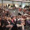 So gibt ein Thema das andere, Angler, Vegetarier und Golfspieler bekommen so nebenbei auch noch ihr Spiegelbild vorgehalten, ebenso Ärzte, die Gerichtssprecherin beim Hoeneß-Prozess oder Romantikhotels und ganz besonders deren Gäste. Zwischendrin bekommt das Publikum immer wieder Reminiszenzen an die längst vergangenen Zeiten der Proteste dargeboten. "Darüber gehört eigentlich auch mal ein Protestlied gemacht ... und das hab ich gemacht.", sagt's und schon geht's los. Live in Begleitung der eingespielten Musik gibt Michl Müller Songs zum Besten, die natürlich nicht wirklich Protestsongs sind, die aber das Publikum immer wieder mitnehmen und einbeziehen.