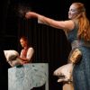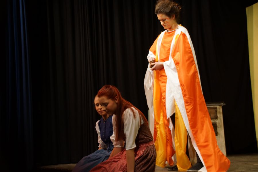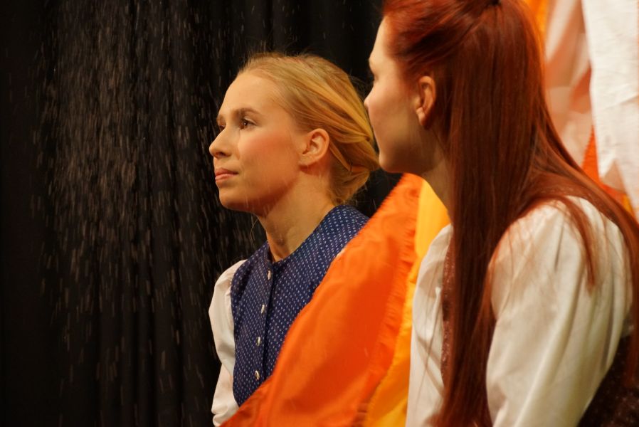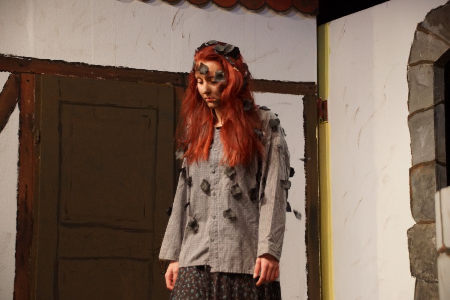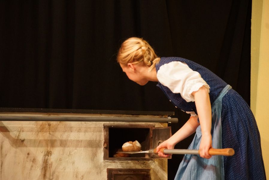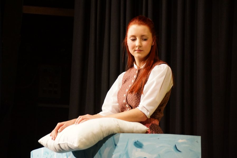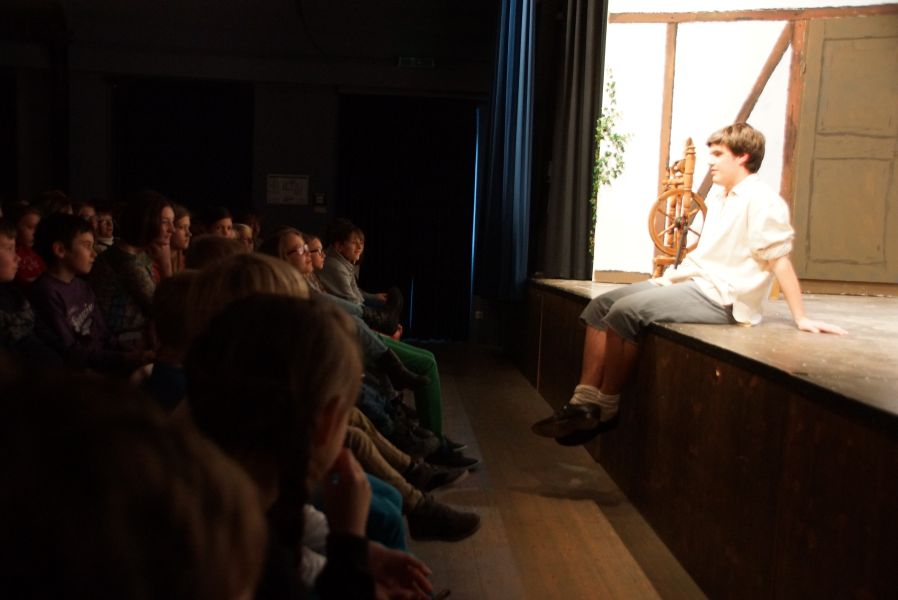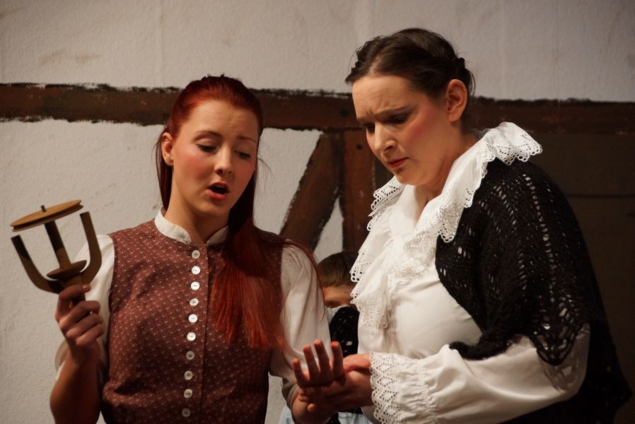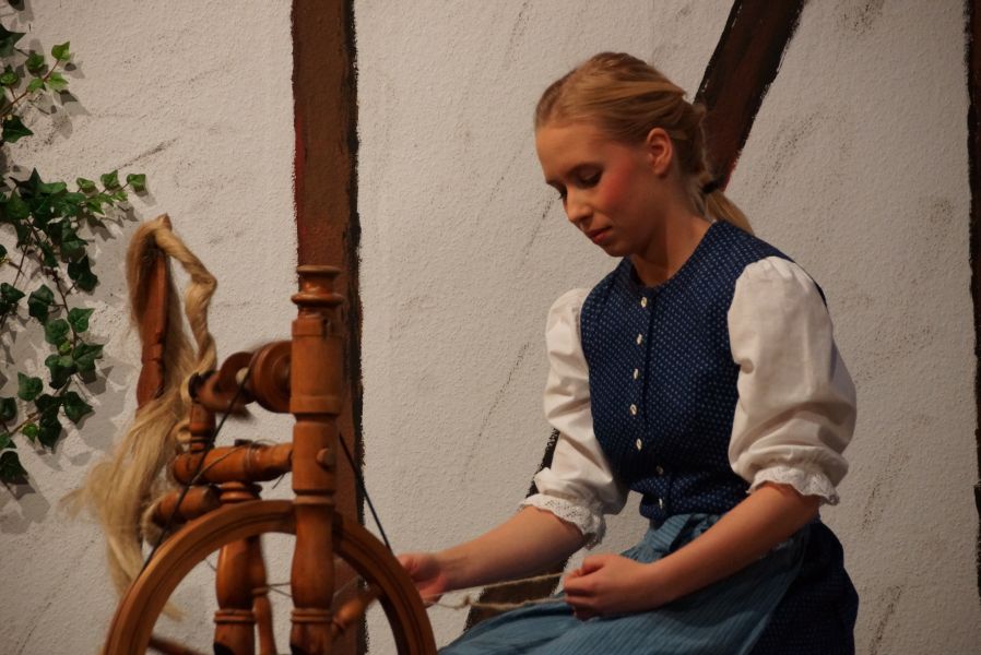 Kein Platz blieb leer. Um Punkt 14.00 Uhr erlosch das Licht und nichts als ein gespanntes Raunen war mehr zu hören. Der Vorhang ging auf und Lena Spornraft, als (Gold-)Marie sah man bei der Arbeit am Spinnrad.