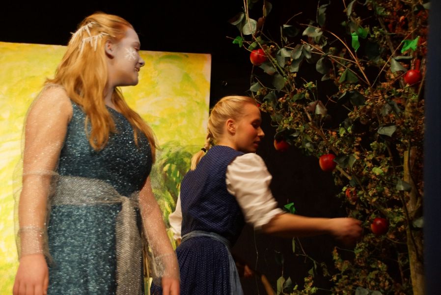 Hier erwarteten die beiden Schwestern nicht nur das um Hilfe schreiende Brot und der sprechende Apfelbaum, auch die drei Kinder von Frau Holle waren mit dabei.