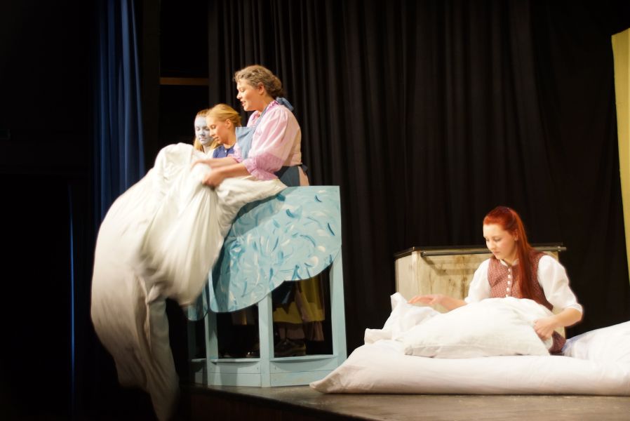 Die Premiere des Märchenklassikers „Frau Holle“ von den Gebrüdern Grimm war, wie nicht anders zu erwarten, ein riesiger Erfolg. Ganz viele kleine Besucher drängten sich, samt ihren Mamas, Papas, Omas und/oder Tanten in den LSK-Theatersaal.